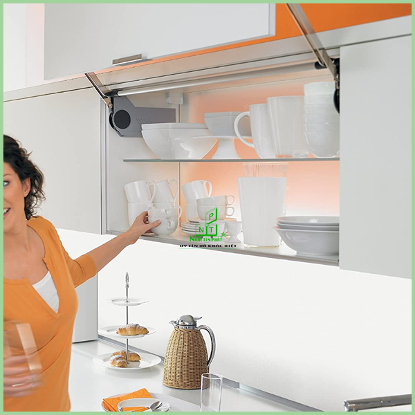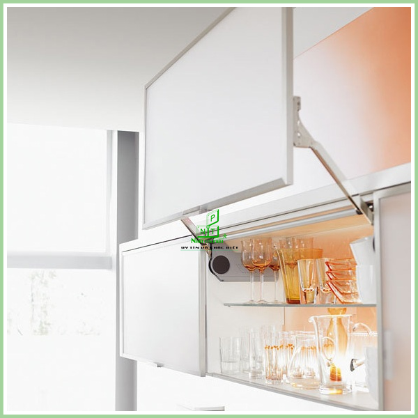 - Mặt trước nâng lên song song với tủ: AVENTOS HL nâng các mặt trước nhỏ song song với tủ, làm cho nó trở thành giải pháp lý tưởng cho các đơn vị tường giữa và cao với các tủ được đặt phía trên chúng. Mặt trước di chuyển lên và ra khỏi đường của người dùng để nó có thể được mở trong khi nấu.