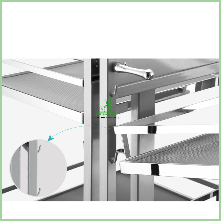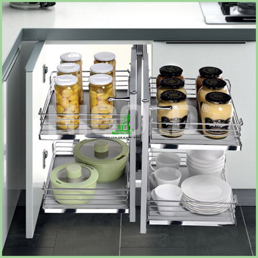 Bạn không cần khó khăn chườn người vào góc tủ mỗi khi muốn lấy một món đồ trên kệ, với thiết kế hiện đại chỉ cần kéo nhẹ kệ góc trái hoặc phải bạn đã chạm được món đồ cần lấy. Chiếc kệ gồm 4 rổ inox, mỗi rổ chịu lực 6kg cho bạn tha hồ để gia vị, chén, đĩa.