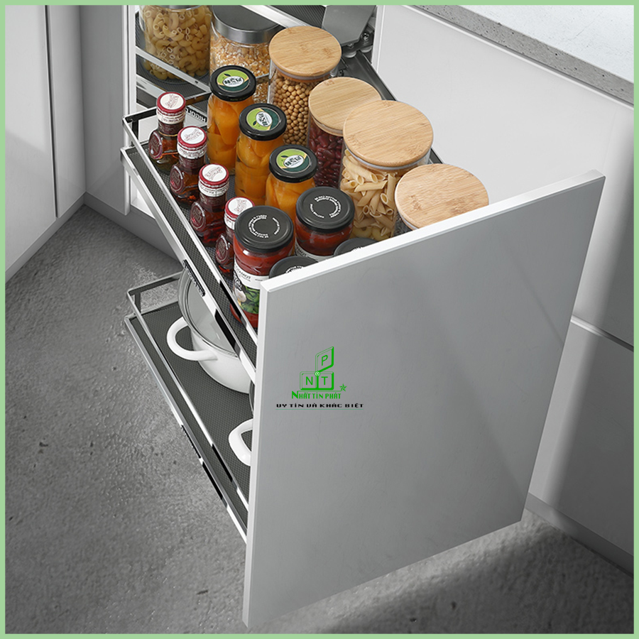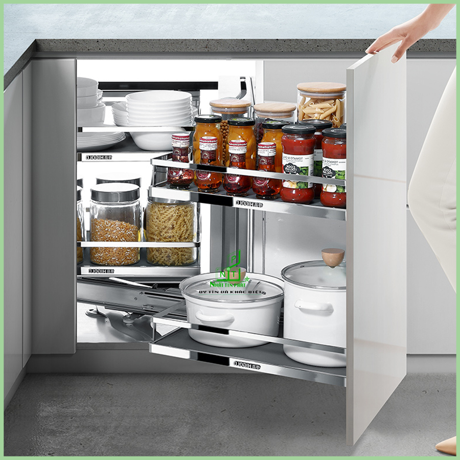 Kệ góc inox ( trái phải ) diamond 900mm Higold 101035 : Thiết kế dành cho tủ bếp dưới, tận dụng hết mọi góc khuất tủ bếp cho bạn không gian lưu trữ chén bát, dĩa, xoong nồi, chai lọ, đồ khô,…Kệ góc trái – phải diamond được tích hợp ray trượt giảm chấn chuyển động cực kỳ nhẹ nhàng, êm ái.